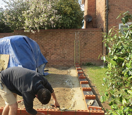 32 METER LONG DOUBLE SKIMMED WALL WITH A HEIGHT OF 2 METERS, BOUNDARY TILES AND TO FINISH IT OFF WITH ROWLOCK COURSE ALL AROUND.